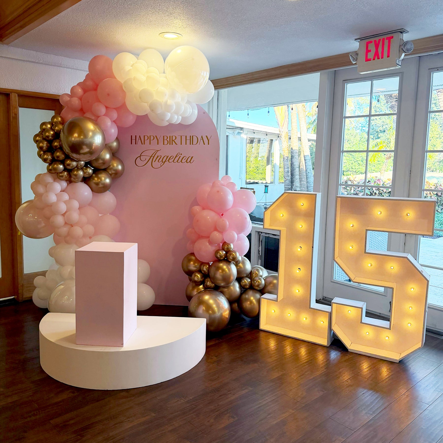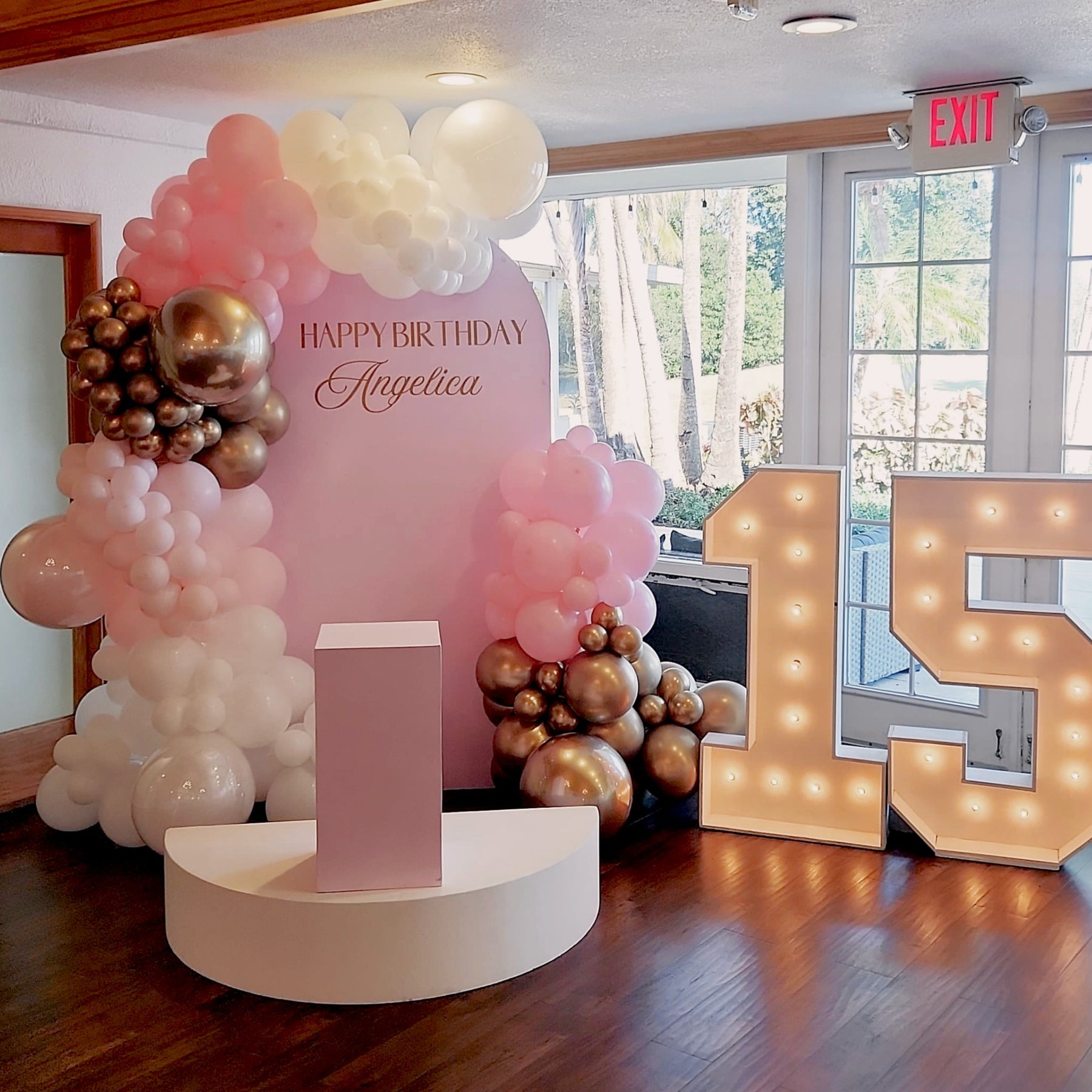 This experience includes customized backdrops, floor styling, decorative elements, themed accents, pedestals, balloon installations, personalized signage, and marquee or neon lighting (subject to availability), all seamlessly designed to create a cohesive and elevated look.