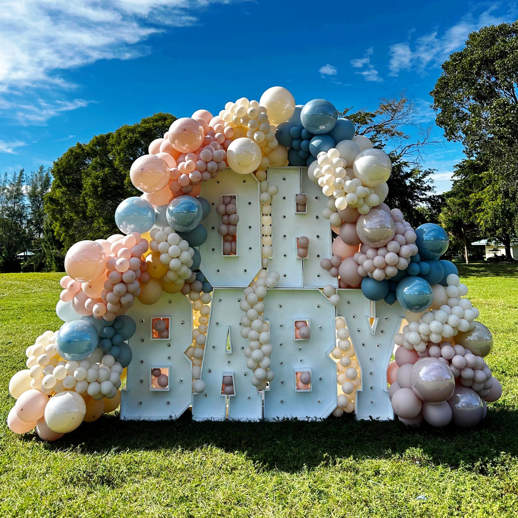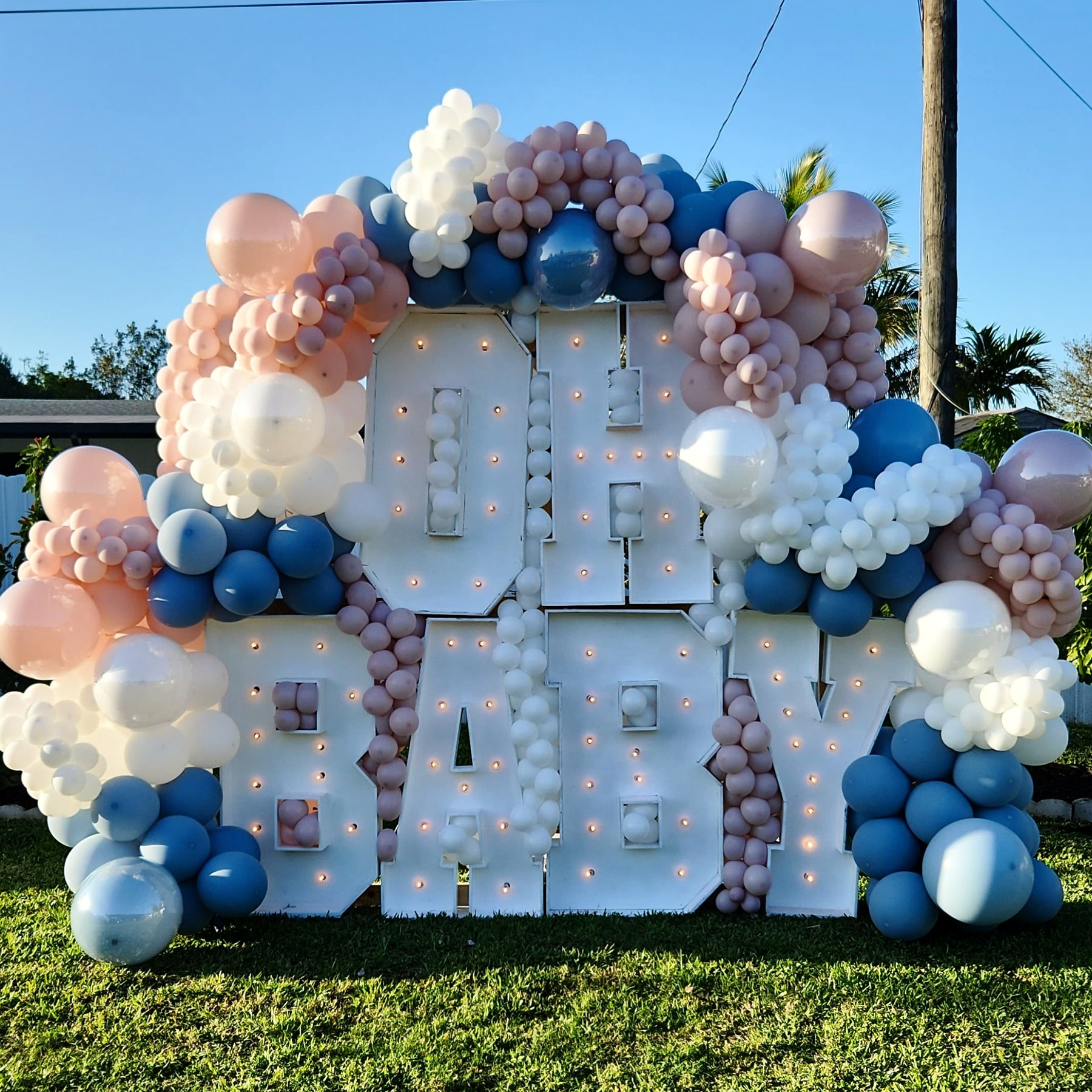 Make a bold statement at your baby celebration with our “OH BABY” Marquee Letters paired with a stunning balloon display. This eye-catching setup will leave your guests in awe!